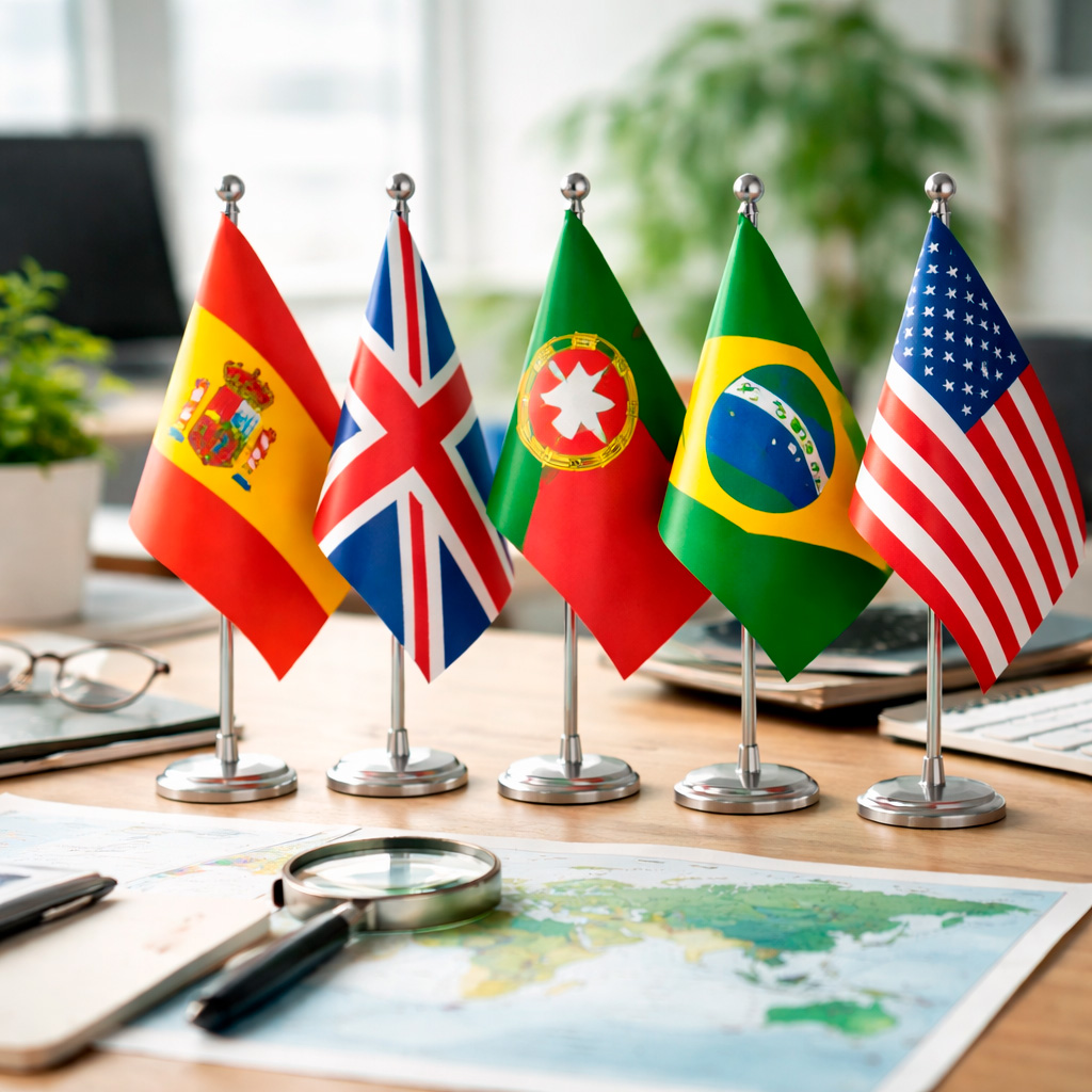 Los idiomas con los que trabajamos son: Inglés de Reino Unido y USA, portugués de Europa y Brasil y español de España y America.